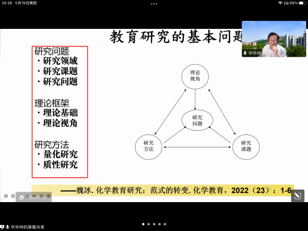 韩莎莎)为更好地帮助研究生理清论文撰写的思路,提高论文撰写的质量,化学教育研究所特邀山东师范大学毕华林教授作研究生学位论文选题与写作专题报告。报告会于2022年5月19日线上举行,会议由篮球比分手机
