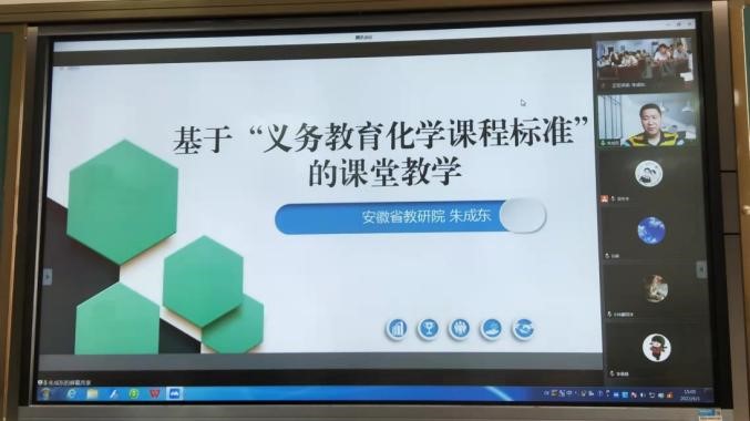韩莎莎)2022年6月1日下午,安徽省教育科学研究院化学教研员朱成东老师应邀为化学教育专业研究生作“基于‘义务教育化学课程标准’的课堂教学”专题报告。本次报告通过腾讯会议线上开展,由孙影教授主持,化学教育专业研究生、化学师范专业部分本科生及部分教学论专业教师共同参加。