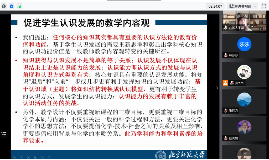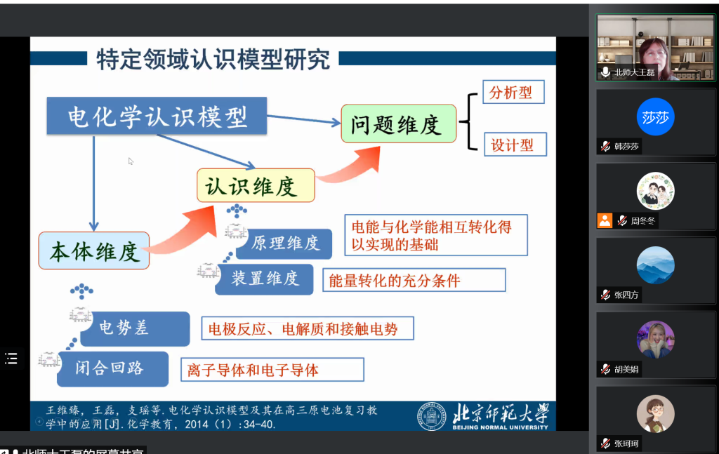 韩莎莎)2022年6月23日下午,北京师范大学王磊教授应邀为化学教育研究生以“关于学生化学认识方式及其发展的持续性研究”为主题作线上专题报告。本次报告通过腾讯会议线上开展,由孙影教授主持,化学教育专业研究生、部分教学论专业教师以及部分化学师范本科生共同参加。