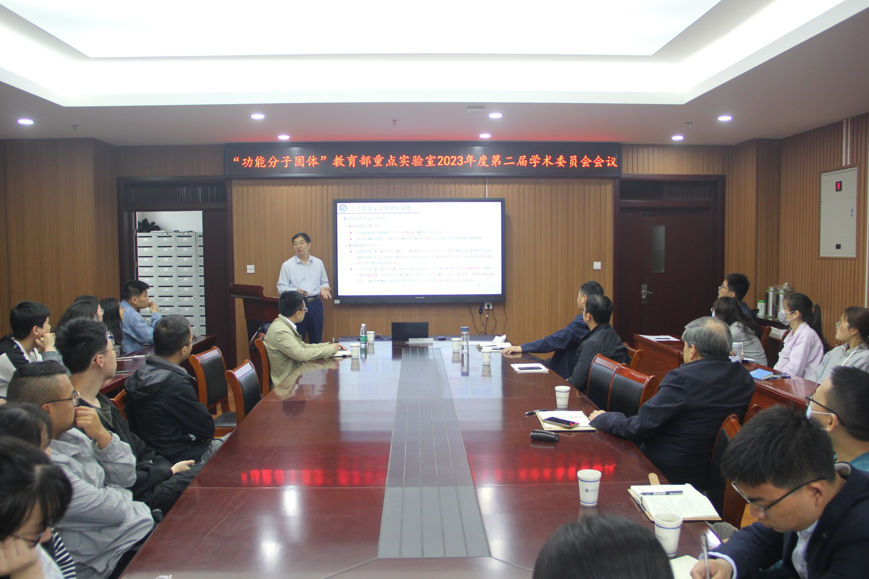 柳云骐教授作了题为“钼基单原子——簇催化剂的制备方法及其催化重油转化性能”的学术报告。柳教授首先介绍了所在重质油国家重点实验室的主要方向及研究进展:润滑油基础油的异构脱蜡技术,废润滑油全组分利用技术,纳米材料合成的水热合成技术,环境催化材料及其催化剂技术,钼基单原子/簇浆态床加氢催化剂技术。接着介绍了重油加氢转化反应的特点。最后介绍了采用离子组装——限域硫化合成策略,引入小尺寸多酸簇阴离子作为金属源,采用阳离子表面活性剂进行完全包裹,提高了轻质油收率,并可在长周期反应中保持稳定。会后,柳教授与参会师生积极互动,对师生们提出的问题进行了细致的解答。