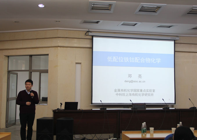 Journey into Carborane Chemistry”的主旨报告。上海有机化学研究所邓亮研究员和北京师范大学自国甫教授分别作了题为“低配位铁钴配合物化学”和“锕系金属杂环化合物的合成、结构及反应性研究”的邀请报告。
