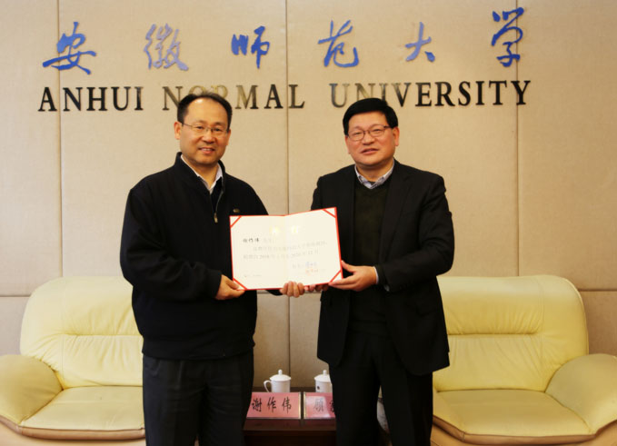 会议期间,我校党委书记顾家山会见了谢作伟院士,并颁发客座教授聘书,感谢谢作伟院士长期以来对我校学科建设的支持,并就我校化学学科建设与谢作伟院士进行了交流。