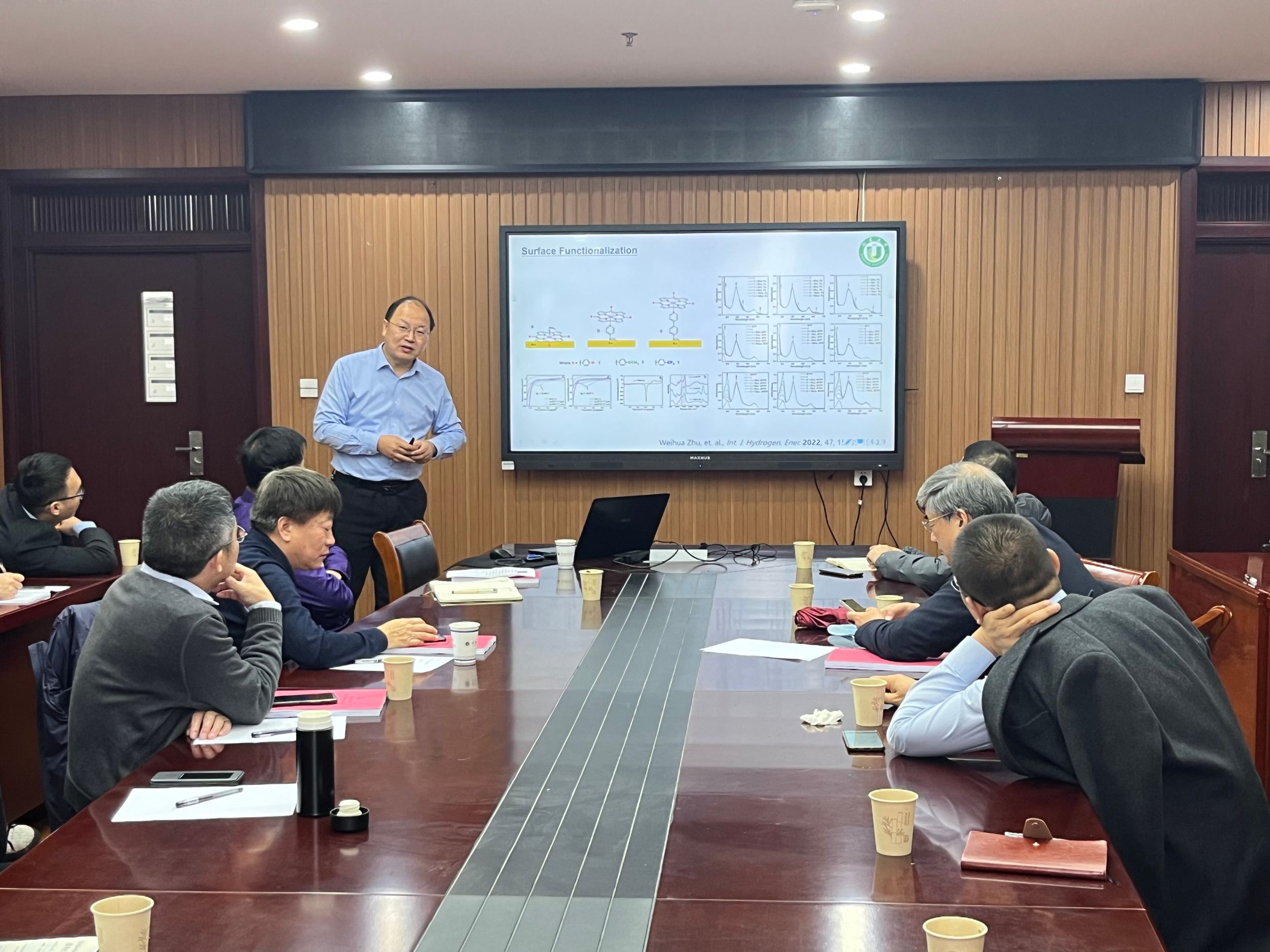 朱卫华教授作了题为“咔咯配合物表界面功能化及电化学催化”的学术报告, 朱教授首先介绍了咔咯类化合物的结构与性质,随后展开阐述了近年来课题组在咔咯配合物合成方面的工作,从咔咯配合物的表面功能、结晶方法、导电聚合物的制备等方面进行了深入介绍。接着朱教授分享了其课题组将咔咯配合物拓展到电化学方面的应用成果。会后,朱卫华教授对与会师生提出的问题一一进行了详细的解答。