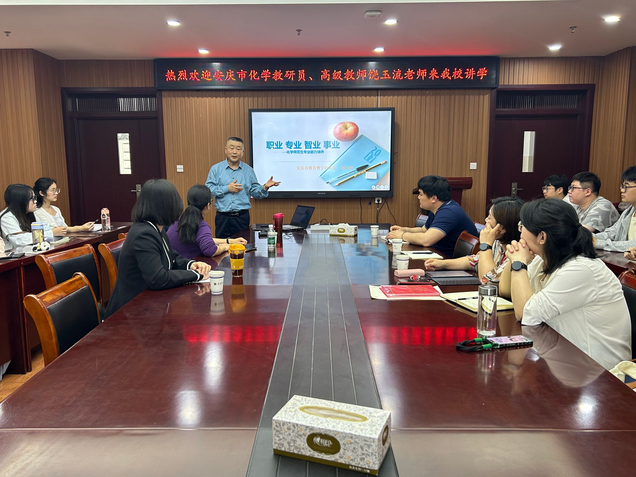 黄子彤)4月9日下午,安庆市化学教研员、高级教师饶玉流应邀来我校讲学。报告会在花津校区礼勤楼702会议室举行,由篮球比分手机
