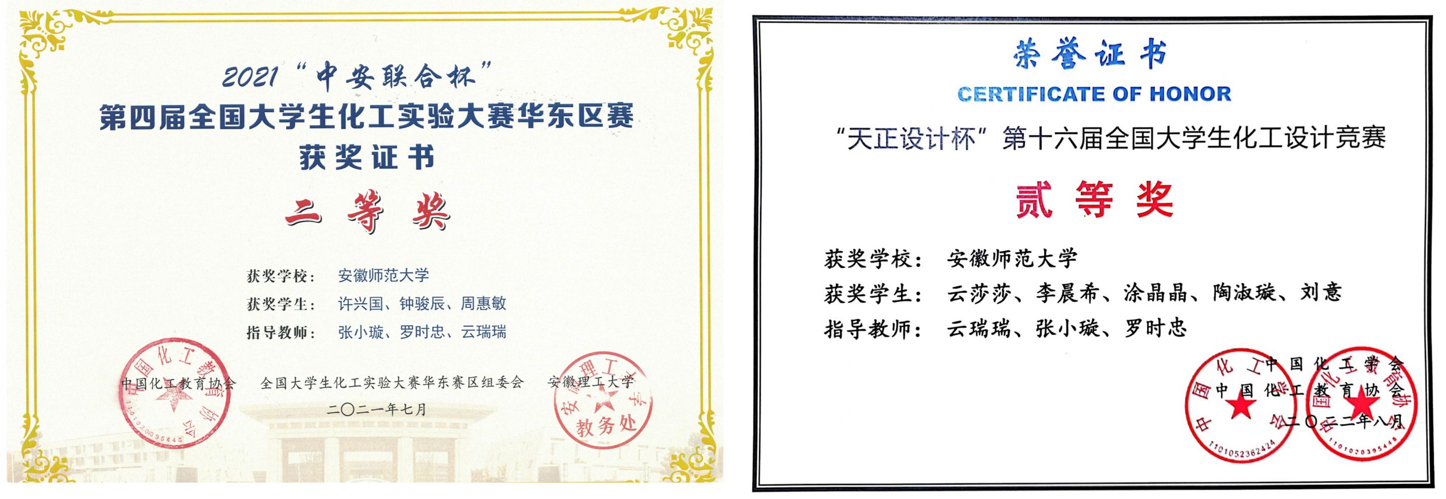 图2 近年来本专业本科生参加各级化工竞赛获奖