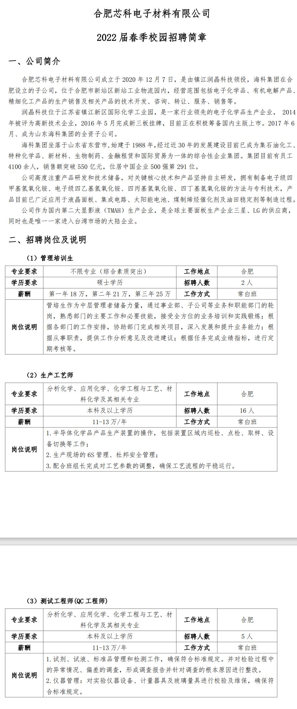 上一篇:前一记录->明基材料(芜湖)有限公司招聘简章 下一篇:后一记录->安庆汇辰药业有限公司招聘简章