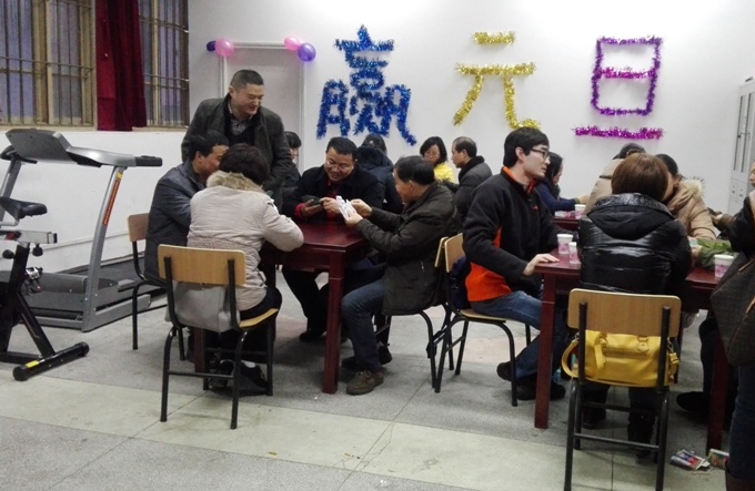 集体活动,凝聚团队力量。本次健身活动月分别设有拔河、羽毛球、乒乓球、掼蛋4个集体活动项目,活动集竞技性、娱乐性为一体。学院工会按二级机构下设化学、应化、材化、化工、实验中心、政工行政6个工会小组,教职工以工会小组为单位报名参加比赛。各个项目活动现场,各队参赛老师发扬团队精神,奋力拼搏,前来加油助威的老师也不时地爆发出热烈的掌声。