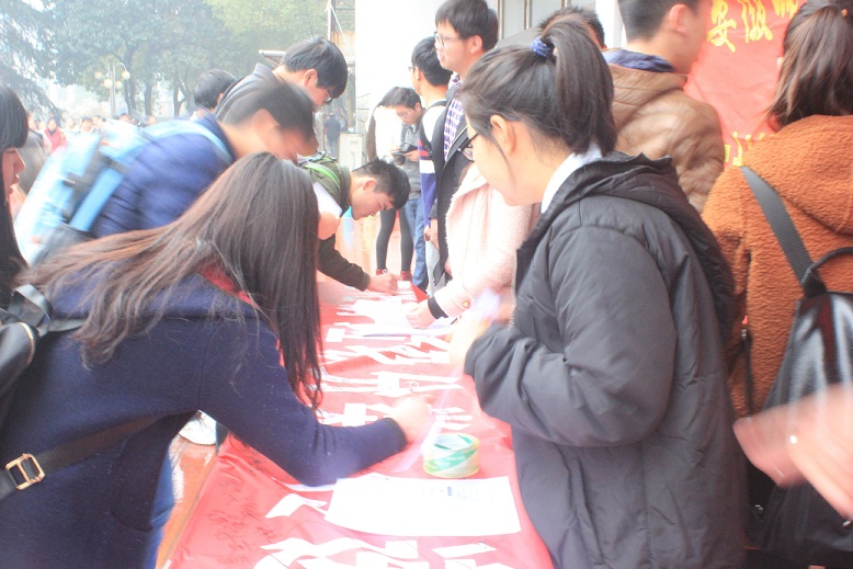 和生科院的会旗在空中轻轻飘扬。宣传台前挤满了同学,他们竞相在红色的横幅下留下自己的签名,留下自己做环保的印记。而两院学生会的同学们则忙着向大家宣传环保知识,比如垃圾的分类,垃圾的丢弃问题,垃圾对环境的污染,垃圾的利用等等,让同学们深刻地认识到垃圾的利与弊并且认真对待。期间还有老师过来给两院同学加油打气并称赞他们的行为值得发扬。