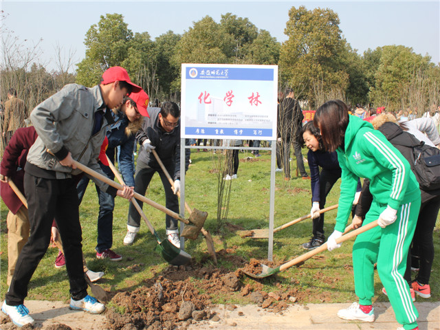 师生共一百五十人开展了以“师生同种一棵树、共建化学林”为主题植树活动,共同栽植了91株木槿树苗。学院师生通过实际行动倡导“绿色生活,人文环保”的理念,号召全体师生积极行动起来,植绿、爱绿、护绿,争做绿色使者,为美丽师大建设添砖加瓦。