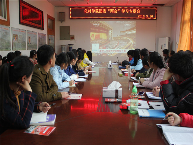 风声雨声读书声,声声入耳;家事国事天下事,事事关心。在院团委的统一部署下,各班级热烈开展了学习“两会”的主题团日活动,通过多种形式热议“两会”内容,传递学习“两会”的“幸福感”。视频观摩观看开幕盛况、聆听政府工作报告;举行座谈讨论,结合所学专业热议“美丽中国”的建设、联系自身发展畅谈创新创业的时代浪潮。