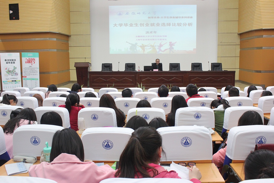 3月30日,“创享未来?大学生创业辅导讲座”第1期在赭山校区科技小礼堂成功举办。学院83届校友、安徽师范大学大学生创业导师洪术年先生担任主讲嘉宾。报告会上,洪术年与大家分享了自己学术科研、就业创业的经验。洪先生先后就读于安徽师范大学化学系、郑州大学化学系,毕业后在安徽师范大学化学系担任教师,从事教学与科学研究。1992年起创办芜湖宏大应用化学研究所,2001年创办上海泰洁洗烫设备有限公司。洪先生结合自身“创办公司”的创业经历,从时代背景、现实条件和创业准备等方面为同学们全面分析了大学生就业创业的选择比较,重点交流了“为什么要创业”、“如何选择创业项目”和“创业导师的作用”等同学们较为关心的创业问题。洪先生强调,在创业过程中“学习+努力”一定大于“学历”,大学生朋友想走通自己的创业之路, “勤奋”和“智慧”将是走向创业成功的重要法宝。交流会上现场同学们还积极发问,洪先生耐心回答指导,为同学们在就业创业方面上做了详尽的指导,并提出了具体有效的建议。在热烈轻松的交流中,同学们受到一次良好的创业和就业教育,减少了就业的困惑,增加了创业的勇气,初步树立了创新创业意识。