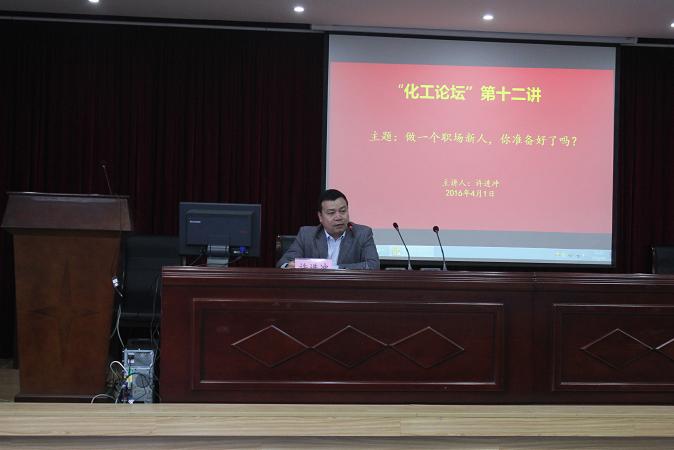 4月1日下午,安徽六国化工股份有限公司党委委员、人力资源部部长许进冲先生应邀在安徽师范大学赭山校区图书馆报告厅开展了以“做一个职场新人,你准备好了吗?”为主题的专题讲座。本次讲座由化学工程与工艺系主任罗时忠老师主持,由大学生就业促进与互助协会承办,参加本次讲座的主要有学院2013级各专业的本科生。