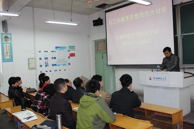 会上,化工系副主任周映华老师带领大家学习了《安徽师范大学教育思想观念大讨论工作方案》校办字[2016]6号文件,对教育思想观念大讨论工作方案进行了解读,结合我系实际工作详细介绍了工作目标、讨论主题和进度安排等。与会教师踊跃发言,针对我系方案提出了建设性的修改意见。罗时忠教授指出,化工系最关键的是探索清楚到底“我系培养什么样的人,什么样的教师是好教师,什么样的学生是好学生”。只有明白了要培养什么样的人才,我们才知道需要什么样的教师,也才能明白办什么样的学,怎样去办学。唐业仓老师指出,培养化工人才是我系唯一中心,教学和科研是我系立足发展的两个基本点,必须“克服‘重教学轻科研’和‘重科研轻教学’两种错误倾向。为配合教育思想观念大讨论,师生代表还重点就“十三五”化学工程与工艺专业建设规划和2016版化工系本科专业人才培养方案修订进行研讨。立足2012版人才培养方案存在的问题,各专业教师代表依次发言,从专业定位问题、课程设置和实习实践、学生培养质量、本科教学课程辅导办法等角度提出指导性意见。座谈会持续近三个小时,会场气氛热烈。