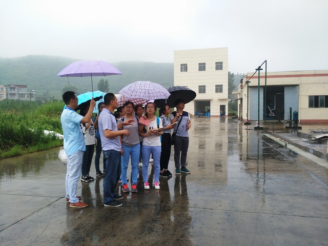 随后,在丁部长的带领下,同学们参观了工厂内部环氧树脂、聚酯树脂等粉末涂料生产的相关过程,负责人指出该粉末涂料利用甲苯循环利用,其主要酯化反应过程成本低,污染小,是现今涂料产品的主流。之后,杨总带领我们参观涂料树脂实验室、漆膜理化性能检测室、涂料助剂实验室等,他拿出的一个个五颜六色的涂装样品让队员们感到惊喜,而研发室中的气液相色谱仪、差示扫描量热仪、高低温交变湿热试验箱以及盐雾腐蚀试验箱则更为直观地让我们了解到化工生产的仪器设备,认识到扎实学习专业知识的必要性,及产学研相结合的重要性。