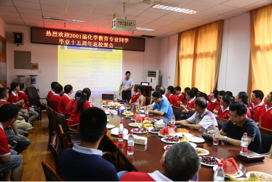 2001届化学教育专业55名校友在毕业离校十五年后,冒着炎炎酷暑,从全国各地赶赴江城芜湖,回到母校安徽师范大学的怀抱,再续母校恩、师生情、同学谊。