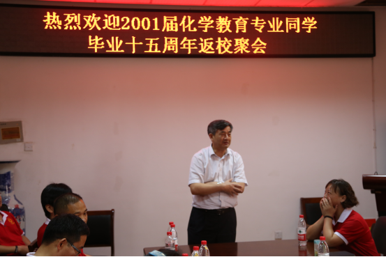 二楼会议室济济一堂,气氛热烈,2001届化学教育专业校友毕业十五周年返校师生座谈会在这里隆重召开。副校长王绍武,篮球比分手机