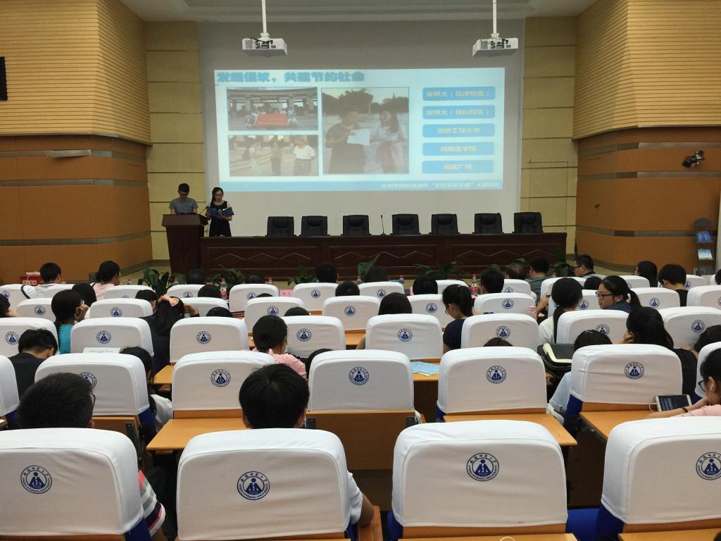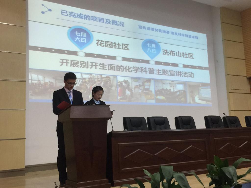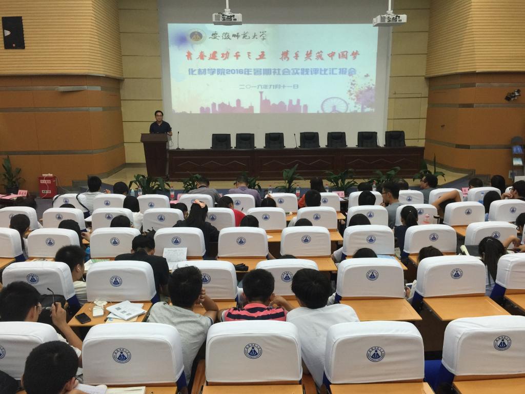 社会实践第三课堂全面育人、化材学子多向发展广泛实践的生动体现。赴安庆池州环保实践团队总结实践收获:环保实践只有起点,没有终点,我们的环保行动一直在路上;赴马芜铜科普实践团队以“化学服务社会,科普点亮生活”为主题,充分发挥专业特长和优势,传递科学正能量,服务社会勇担当;赴怀远县暑期支教团队用真诚的心、实在的行,彰显着志愿者的青春面貌;赴皖江城市带关注大学生就业创业调研团队用万余字的调研报告展现着我们对大学生就业前景的关注和努力。汇报过程中,各团队主题明确,逻辑清晰,思维活跃。一张张生动的照片、一个个真实的数据、一本本记录实践点滴的日志、一篇篇在媒体上发表的活动新闻稿件……汇报者们用不同的形式传递共同的声音,那是收获、成长、感动、改变。