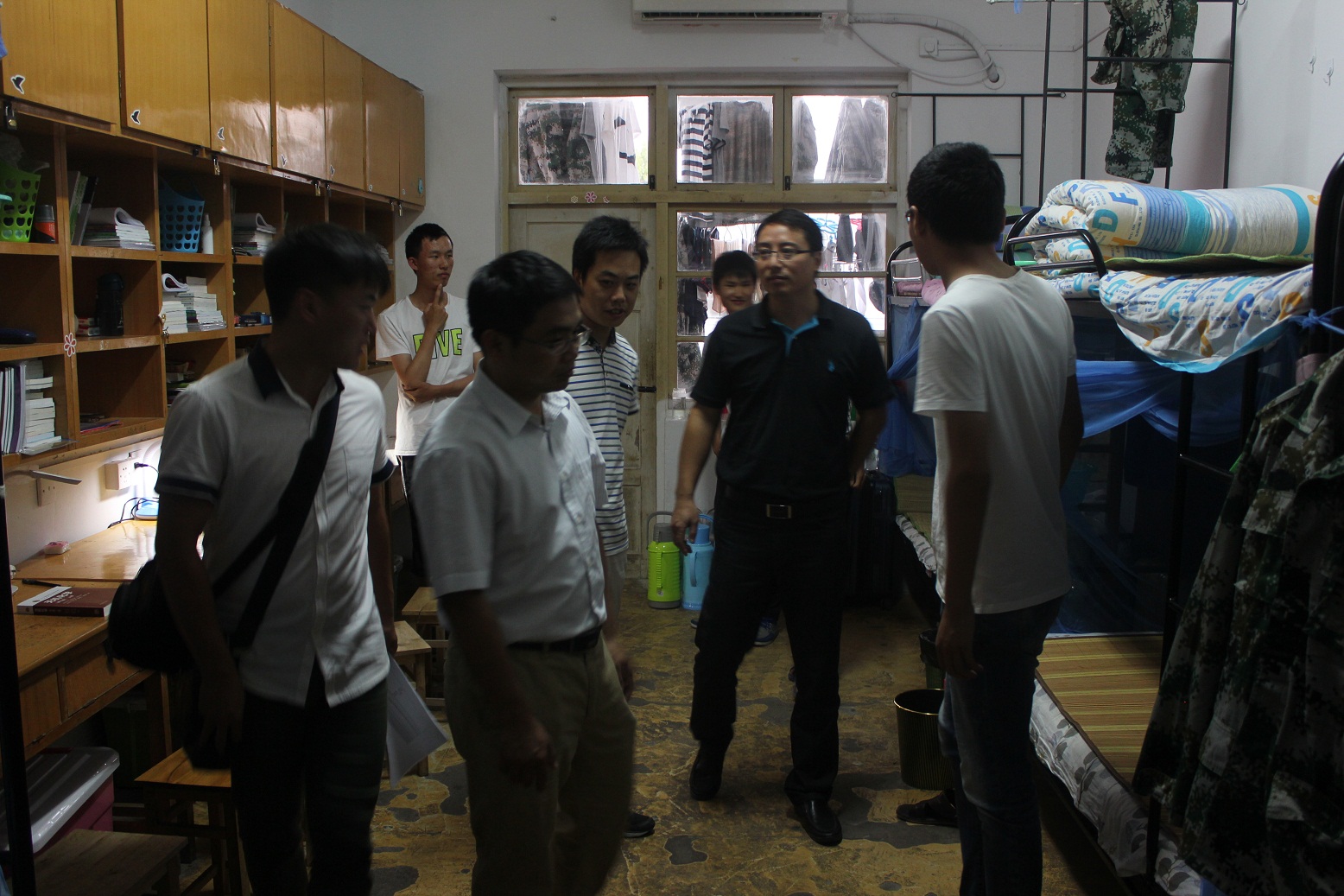 学院领导、系主任和辅导员分组开展走访调研,进入寝室后,他们主动向同学们了解宿舍生活情况,询问同学们日常生活中遇到的问题并给予建议。走访中,学院领导汪俊武、刘桂云、周双六、余妍霞重点了解了毕业班同学考研就业情况,关心同学们在就业中遇到的困难并提供解决方案;咨询2016级新同学适应情况,对低年级同学寄予希望。化学系主任阚显文、材料系副主任沈业青、化工系副主任周映华就学生在学习过程中遇到的学业课程、教学计划、考研就业等方面的问题与同学们详细解答、耐心指导。老师们每到一间寝室,都着重强调了寝室安全问题,提醒同学们要防微杜渐,杜绝隐患;还提醒同学,季节更替,多关注天气变化,及时增减衣物,加强身体锻炼。同学们纷纷表示,会按照学校规定的寝室安全各项要求开展寝室建设,保持良好寝室环境,为学习和生活储备正能量。走访发现,我院学生思想稳定积极向上、寝室整体保持卫生整洁,生活学习氛围良好,无违规电器使用情况。
