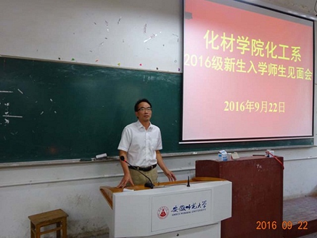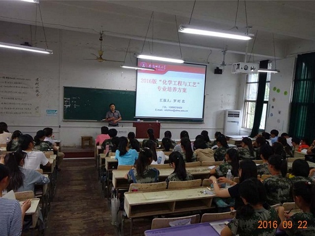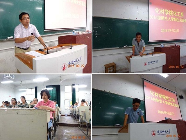 化学工程与工艺系在教学楼1109教室举行2016级本科生入学师生见面会。学院党委副书记余妍霞老师、学校教授委员会朱昌青教授、化工系主任罗时忠教授、化工系何心伟、张小璇、王露、王俊和李望等数十位教师,辅导员云瑞瑞老师和2016级化学工程与工艺专业全体同学参加师生见面会。