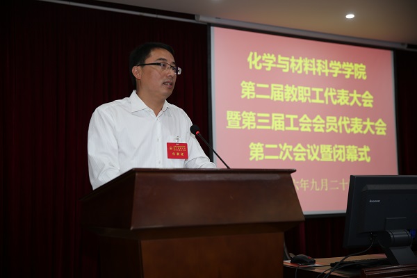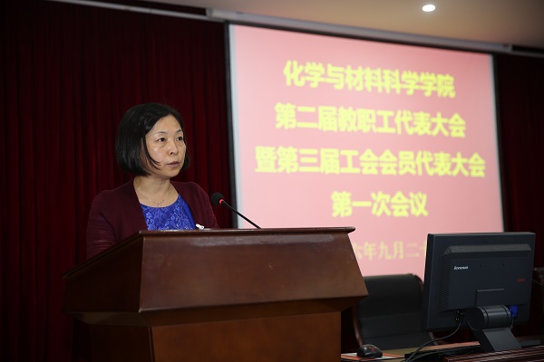 随后,召开了第一次大会。会上,高峰作了题为《凝心聚力 共谋发展 努力开创高水平学院建设新局面》的报告。在报告中,高峰院长对学院“十二五”期间的主要成绩做了总结,在肯定成绩的同时也对存在的问题进行了分析,介绍了学院“十三五”期间的工作规划。刘桂云作了题为《凝心聚力 共建幸福家园》的报告,报告中,刘桂云对过去五年工会的工作作了总结,正视了工会工作中存在的问题及不足,并明确了今后五年的工作思路。