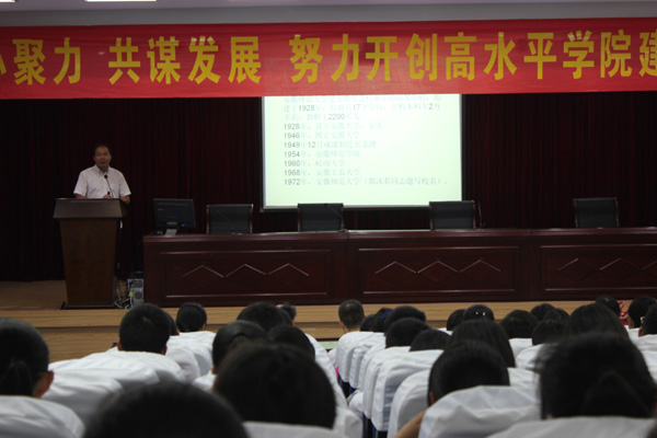 会议伊始,王国良表达了对到场师生们的热烈欢迎,介绍了会议流程。首先,张小俊副院长代表学院对材化系117名“小花菜”的到来表示了祝贺和欢迎,并希望同学们尽快适应大学生活,学会学习与生活,明确发展目标,提升个人素质和体能,争做全面发展的大学生。随后,王正华通过一张张生动的PPT向同学们介绍了安徽师范大学和篮球比分手机