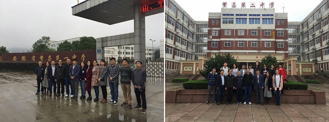 副院长张小俊,教务处实践科科长曹军,实习指导教师闫蒙钢、王素凡、熊言林等一行赴皖南片实习学校,看望慰问正在进行教育实习的13级化学专业实习生。