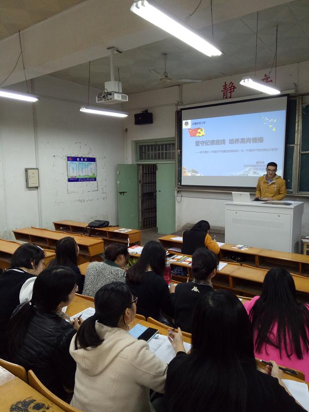 研究生无机化学党支部在生化楼2023教室召开,围绕“坚守纪律底线,培养高尚情操”专题进行了讨论学习。会议由崔艳威同志主持,支部全体党员参加了会议。