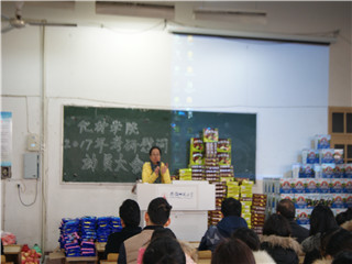 会上,高峰代表学院向考研同学表达了亲切的问候,并且希望同学们在最后一个月坚定考研目标,越到最后越要淡定,合理的安排时间,不轻言放弃,不轻易气馁,保持良好的心态迎接考试。随后,各系负责老师也分别给考研学子送去了温暖的慰问和鼓励。老师们反复强调,考研的最后阶段不仅仅是学习能力的比拼,更是心理的较量。最后一个月,不忘初心,调整好心理状态,劳逸结合,以饱满的精神状态去拼搏。