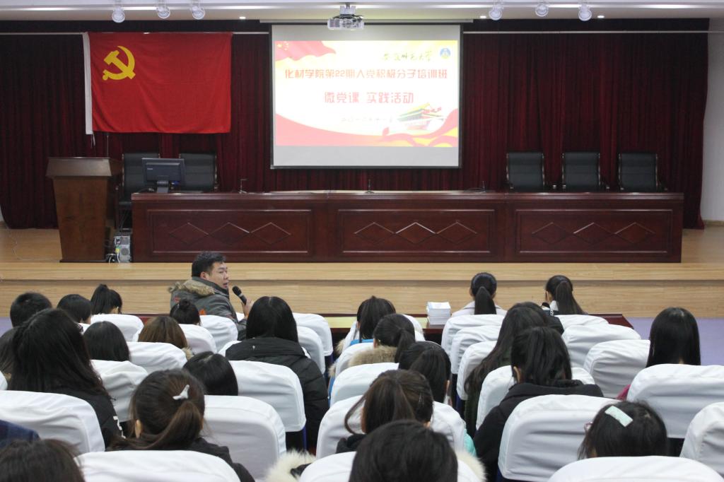 分党校在赭山校区图书馆报告厅举行了学院第22期(总第54期)入党积极分子培训班实践培训教学活动。活动以“微党课”和“长征故事会”的形式展开,学院全体入党积极分子参加了本次实践活动。