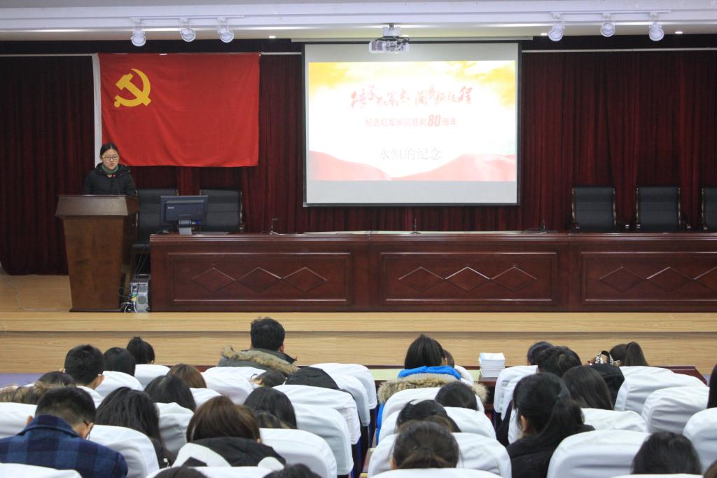 为纪念中国工农红军长征胜利八十周年,进一步学习长征精神,分党校以“长征故事”为主题开展交流会。来自分党校的6个学习小组的12名代表分别结合PPT声情并茂地讲着那些熟悉的“长征故事”。《金色的鱼钩》、《丰碑》,或耳熟能详的文章,或鲜为人知的故事,纷纷以吟诵、朗读或陈述的形式展现。一段段感人肺腑的情节,一篇篇壮丽辉煌的诗篇,在主讲人的娓娓阐述下,感染着现场的每一位听众。活动最后,分党校班主任蒋建伟老师希望全体入党积极分子不忘历史,珍惜学习机会,在实现青春梦想的征程中进一步传承和发扬长征精神,为走好新时期的“长征路”努力贡献青春力量。