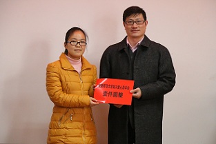 14级应用化学专业孟靖婕同学代表受助同学向薛琦先生表达了诚挚的感谢,并表示会认真学习,积极进取,用自己的拼搏与奋斗去改变生活、回报社会。接着,化学工程与工艺系主任罗时忠代表学院向薛琦先生颁发了创业导师证书。仪式最后,余妍霞再次对薛琦先生给予贫困学子的帮助表示了感谢,并期望受助同学能珍惜大学时光,努力学习,心怀感恩,实现理想。