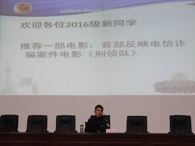 范青松警官首先以07级师兄的身份对16级新同学的到来表示了欢迎,并向同学们阐述了安全教育讲座的必要性和重要性,用详实的数据科学的对各类常见犯罪进行了归纳和介绍。接着,他从防骗、防盗、防火、防人身伤害四大类常见安全隐患入手,以鲜活事例为依托,分34条详述了常见的安全问题,并逐条给出了可行的建议,介绍内容包括目前较热的电信诈骗、微信诈骗、高校不良网贷、寝室用电安全等方面。范警官的讲座内容条理分明、生动幽默,每一条目的介绍都是按照“隐患说明—案例分析—防范方法”的流程进行,内容有理、有据,讲述用心、用情,同学们都听得津津有味,收益颇丰。之后,范警官从“犯罪先于刑侦”的立意入手,就个人、国家如何应对复杂的安全问题进行了介绍,让同学们对周围环境的安全状况有了更深层次的了解。最后,范警官以师兄的身份,向新同学们提出了5点建议,即增强荣校意识、拒绝网络谣言、建立大局观念、多与他人沟通、遇事沉着冷静,各位16级新生也以热烈的掌声对师兄的关心表示了感谢。