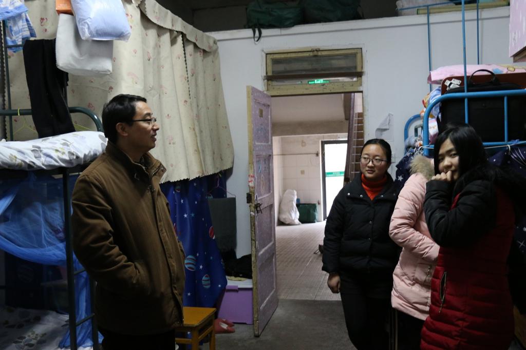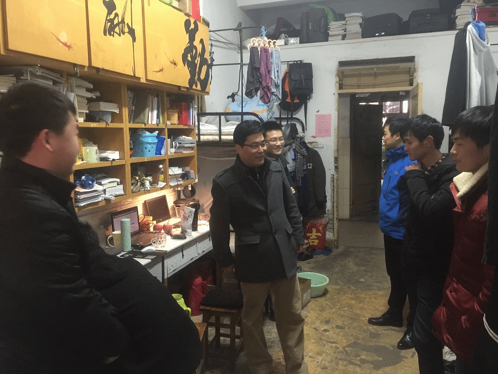 蒋建伟)2月14日下午,学院全体党政领导带领专兼职辅导员分组深入全体学生宿舍,给学生送去新学期寄语,并提醒学生强化安全意识,主动开展安全隐患排查。
