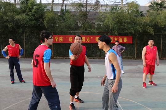 于3月7日下午在赭山校区篮球场举行了以“成长·阳光”为主题的教职工—新生篮球友谊赛。学院党委书记汪俊武参赛,副书记余妍霞也到现场为比赛加油助威。
