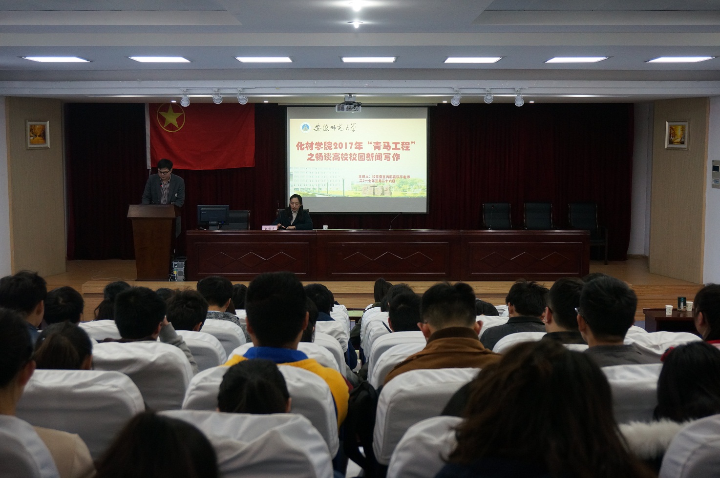 于3月26日上午9:00在图书馆报告厅举行了“畅谈高校校园新闻写作”专题讲座。校党委宣传部篮球比分手机袁黎平老师出席此次活动并担任主讲人。培训会由培训班班长、院团委学生副书记汪洋主持召开。
