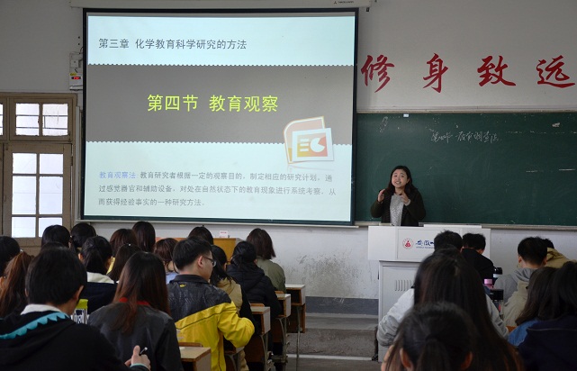 本次授课内容是“教育观察”,是《化学教育科学研究方法》课程中重要组成部分。程瑶琴老师强调,教育观察是有研究目的和计划的、在自然状态下对教育现象进行系统考察的研究方法,结合师范生已有专业知识,引出日常教学研究中的听评课关注的内容和聚焦点;接着从“课堂观察值得探讨的问题”、“课堂观察的内涵界定”、“课堂观察的内容”、“课堂观察的记录”以及“观察工具开发”等方面展开教学,有的放矢、深入浅出地讲解了教育观察的涵义和实施方法;结合案例文献,引经据典,带领师范生走进教育科研的世界。程瑶琴指出,教育观察的目的是为了发现教学中的问题,从而达到提升教学效果的目的,她强调基于课堂观察层次的分析必须建立在专业和客观的基础上。课上程老师向学生推荐阅读《课堂观察走向专业的听评课》等书籍,并着重介绍了LICC观察模式,以及课堂观察定性、定量记录的方法体系,展示课堂观察的科学性、有效性以及可测量性。随后,程老师指出,教育观察要点多维度广,它是科学研究方法,却不是一成不变的,因为教育是科学,也是艺术,将课堂引入高潮。程瑶琴老师向全体师范生建议,在本科学习期间要运用课堂观察,多接受批评建议,作为新手教师多把握听评课机会,提升自身教学能力,全体学生表示受益良多。