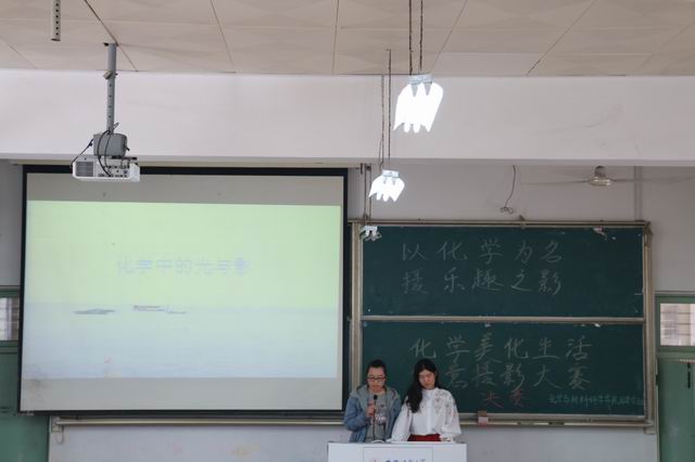 比赛中,董燕、陈凤云和查文慧同学以“花菜”的身份自述生活中的化学“囧途”,主题新颖,语言活泼有趣,让观众笑声中领略到化学魅力;彭青、石文文同学在优美的音乐声中展示一张张精美的照片,将化学与生活的联系缓缓道来,让我们欣赏到生活中的化学之美;王明明、王琴同学记录下化学实验中的精彩瞬间,美丽的结晶、绚烂的火光以及微观下的“小世界”,体现了化学实验的乐趣。每组同学都展示了自己眼中的化学,让我们透过照片、视频进入到一个个美轮美奂的化学世界。现场掌声连连,精彩不断。