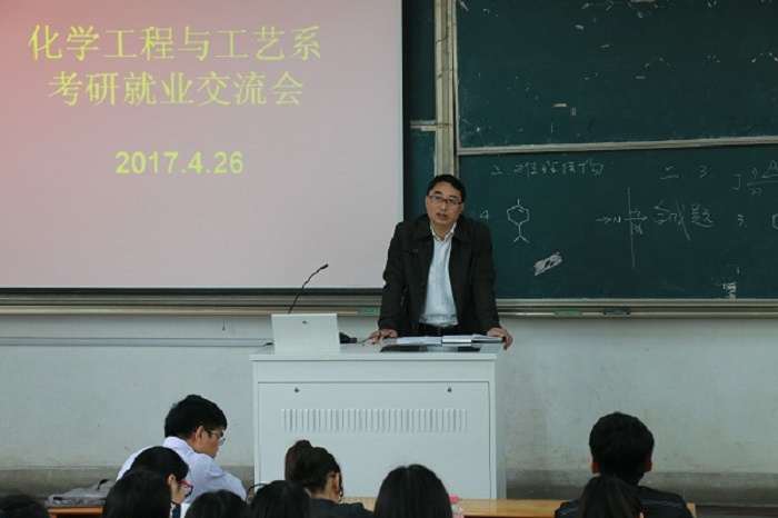 在考研就业交流会上,各系主任、副主任及专业教师从专业角度为学生们的成长规划给出了许多宝贵的建议。他们从考研目标的确立,考研院校的选择、考研复习的规划、考研心态的把握等方面为备战考研的学生解答了诸多疑惑,并鼓励考研学生树立信心,坚持到底;对于就业的同学,系主任及专业教师立足专业特色,分析了本专业的就业形势及就业前景,鼓励学生做足准备,主动求职。学院领导在各系的考研就业交流会上作了动员讲话。汪俊武在化工系考研就业交流会上勉励学生珍惜青春,理智选择、合理定位,科学安排,全力以赴打好考研就业攻坚战;在化学系考研就业交流会上,高峰结合自身的成长经历,从学生的视角,以风趣幽默的方式鼓励学生坚定初心,努力奋斗,用青春汗水浇灌理想之花。副院长张小俊、周双六分别在材化和应化系考研就业交流会上为学生们加油打气。考研就业交流会上,各系同学还就考研就业中的问题与领导老师进行交流互动,领导老师耐心解答了学生们提出的问题。同学们纷纷表示受益匪浅,对于未来的挑战有了更足的信心。