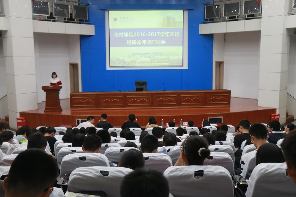 院团委的组织下,于敬文图书馆报告厅举行了2016-2017学年先进班集体评选汇报会。院党委副书记余妍霞老师、全体专兼职辅导员应邀出席并担任此次评选会评委嘉宾。参加评比的11个汇报班级代表们和2017级全体新生聆听了此次评选会。汇报会由院团委宣传部部长李艺琦同学主持。