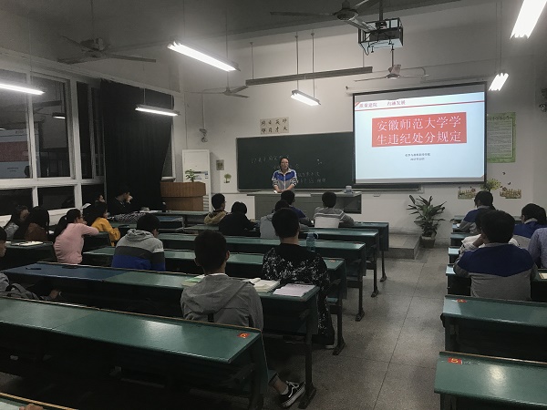 各年级辅导员通过召开主题班会的形式,及时将《普通高等学校学生管理规定》、安徽师范大学实施办法及相关制度传递给学生。为了深化学生的认识,学工队伍特地将全新的管理制度与以往的管理制度进行比较,突出变化的重点内容,帮助学生明确新方法、新要求、新规定。