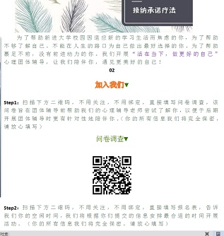 迎接“1025”心理健康日之际,为进一步加强我院大学生心理健康教育工作,深入推进心理素质教育,我院特围绕“感恩有你,携手同行”为主题开展一系列内容丰富、形式多样的心理健康活动,让我院学生在感恩中前进,在相伴中同行。