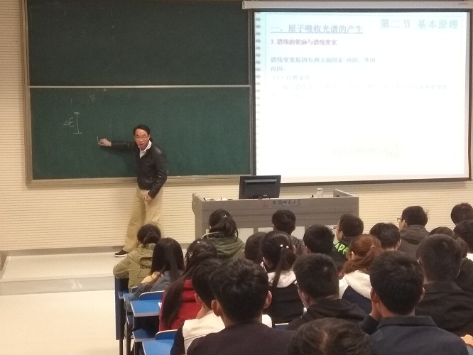 朱昌青教授,在花津校区2070501录播教室为2016级材料化学一班的全体同学讲授了一堂《仪器分析》示范观摩课。校纪委书记程度、校教学督导团、院教学督导组、学院领导和部分老师参了本次教学观摩活动。