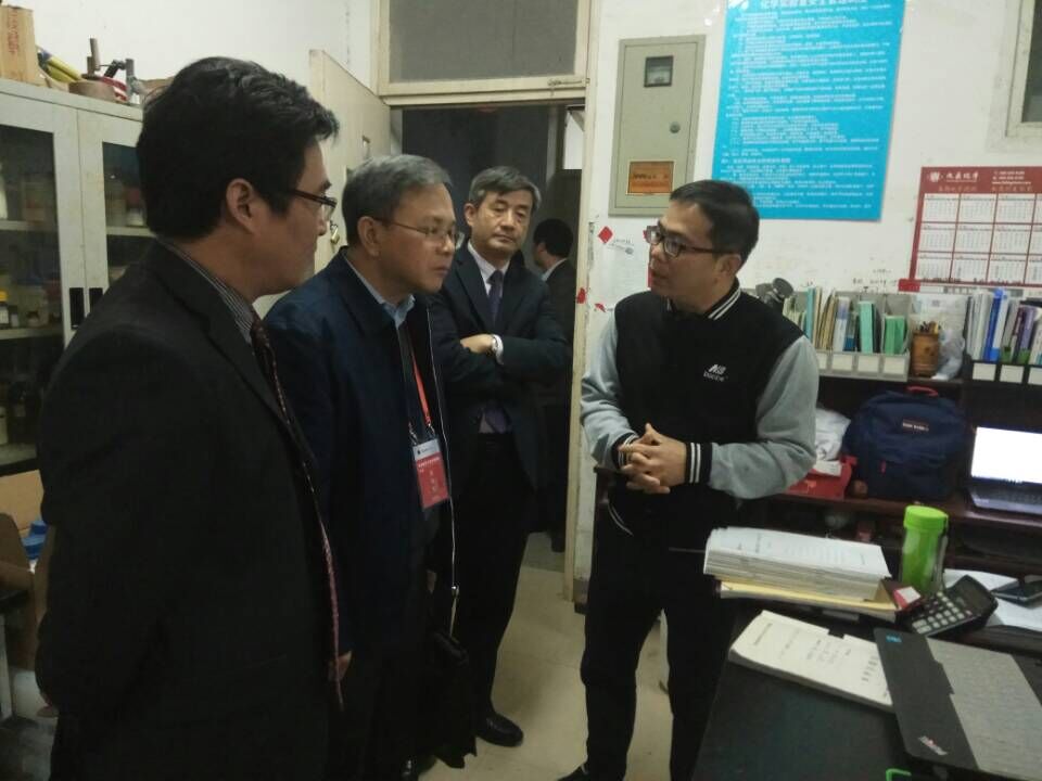 11月6日下午,苏桂发教授一行在副校长王绍武和学院领导班子陪同下,对功能分子固体教育部重点实验室进行了实地考察。考察中,苏教授走进实验室,细心询问正在做实验的研究生研究进展情况,与导师们就实验室建设与基本运行情况进行了深度交流。苏教授高度赞赏了功能分子固体教育部重点实验室等科研平台的建设情况,对实验室未来发展提出重要的意见建议。