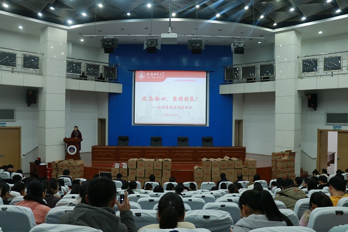 会上,学院领导向考研同学表达了亲切的问候,各系教师代表结合自身考研经历,给考研学子送去了温暖的慰问和鼓励。老师们反复强调,考研的最后阶段不仅仅是学习能力的比拼,更是心理的较量。最后一个月,不忘初心,坚持到底。