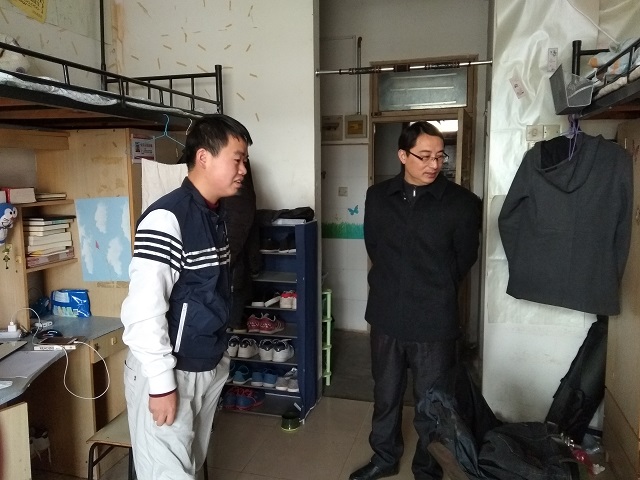 此外,领导老师亲切询问学生假期的学习和生活状况。书记汪俊武在走访毕业班寝室时,重点询问了毕业班同学的考研、就业情况。对考研较有把握的同学,汪书记亲切叮嘱要早做准备、备战复试;对正在积极求职的同学,表示了支持和鼓励,希望他们要树立“先就业再择业”的就业观念,保持求职信息畅通,端正就业态度。院长高峰、副书记余妍霞、副院长周双六在走访二三年级的学生寝室时,重点询问了同学们的学业情况,鼓励同学们要学好专业技能,做好发展规划。副院长张小俊在走访新生寝室时,重点询问了同学们学习、生活中遇到的困难,鼓励新生主动展示自我、注重全面发展。
