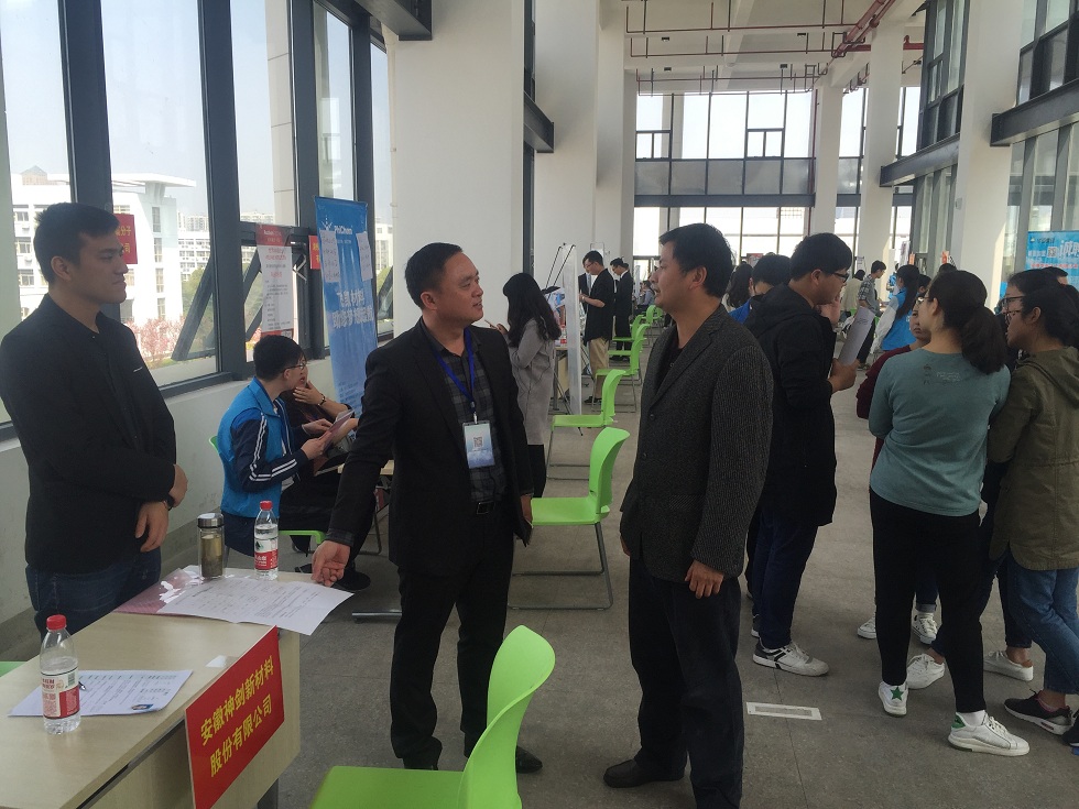 现场被肥东圣泉中学录取的张苗同学在接受记者采访时说道:“作为师范类毕业生,我在校期间不断积累教育教学知识,训练提高教学技能和水平,能顺利被用人单位录取当然非常高兴,希望自己在未来的三尺讲台上更进一步,充分展示一个师大学子的精神面貌。”南京梯尔希医药有限公司展台负责人说:“与学业成绩和工作经验相比,我们更看重毕业生的进取态度和职业精神。他们身上有活力、有闯劲、能吃苦,是公司人才可持续发展的重要支撑。”本次招聘会为用人单位和求职学生搭建了双向交流选择的良好平台,形成了用人单位、学生、学院多赢的格局,取得了圆满成功,反响热烈。