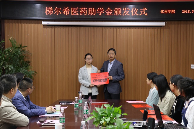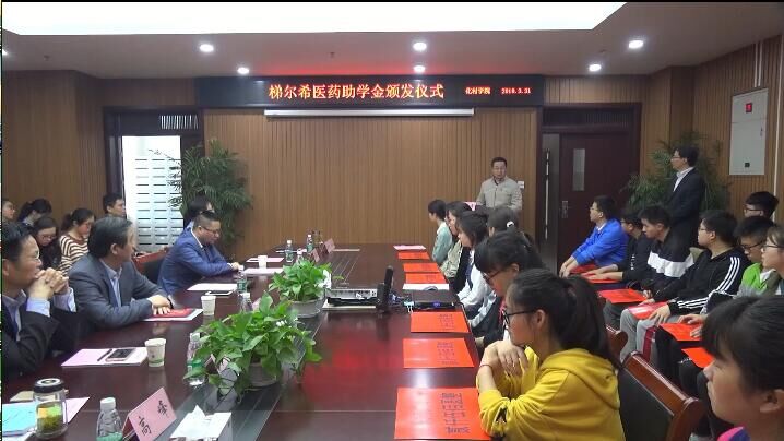 陈礼勤为受助同学逐一颁发了助学金,并向同学们介绍了梯尔希(南京)药物研发有限公司的发展历程以及未来几年的发展方向,鼓励受助同学要不忘初心,勤奋学习,不断汲取知识,用知识改变自己的命运,为自己创造更加辉煌的未来,也在未来用自己的努力更好地回报母校,回馈社会。陈先生还介绍了在梯尔希公司工作的师大毕业生的工作、学习和生活情况,并表示对师大学子去公司工作的欢迎。