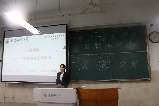 经过初赛的层层选拔,共有6位选手脱颖而出。比赛中,16级材料化学专业的王思源同学,乡镇级城市中学教师是他的职业目标,一张张图片展示的是他为梦想插上的翅膀,流露出的是他对理想的执着追求。与之不同的是,17级化学工程与工艺的郝艾婷同学希望成为一位化工咨询师,激情的解说搭配着多彩的图画,让赛场成为她展现梦的舞台。16级化学师范的黄月与李书惠同学的目标同为成为一名化学教师,两个人分别以不同的形式向观众展现了她们的自我评价与定位。以梦为笔,书写青春,17级材料化学的彭文婷与16级应用化学的赵宁同学的职业目标分别是研究所的研究员和化妆品研发工程师。每一位同学的汇报,都饱含着自信与希望,每一份理想都经过了时光与激情的洗礼。
