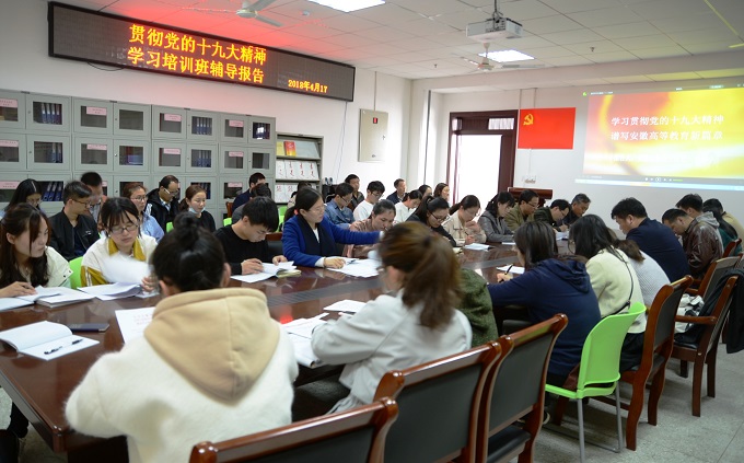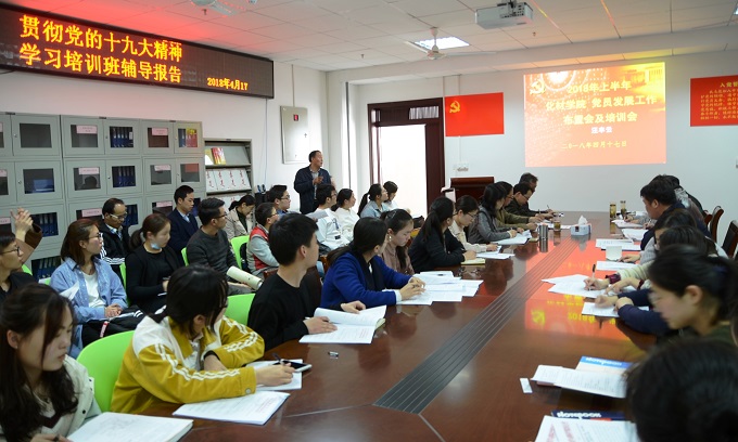 党员学习贯彻党的十九大精神培训班开班仪式在学院党员活动室举行。学院党委委员、党支部书记、党支部委员及部分党员代表参加了会议。