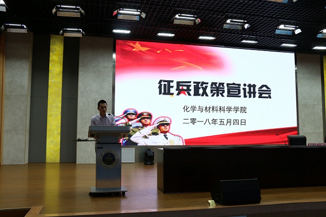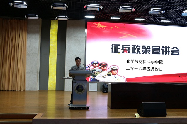王菲)为了激发我院大学生参军热情,及时了解征兵优惠政策,2018年度征兵政策宣讲会于2018年5月4日晚在理科大楼一楼报告厅顺利举行,学院请来了来自物理与电子科学学院的两位15级退伍师兄给17级同学分享自己的参军体验,宣讲会由17级辅导员陈露主持。
